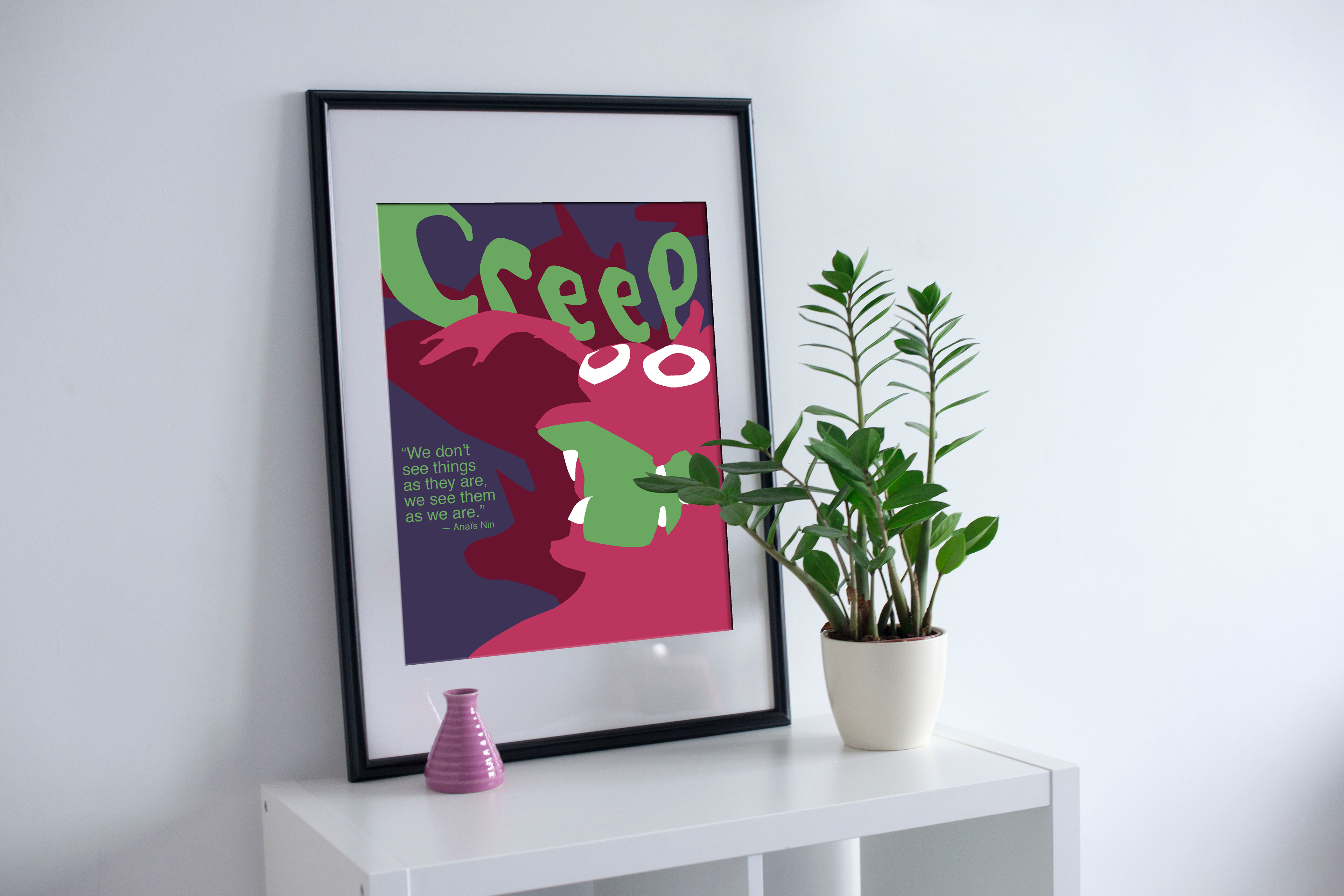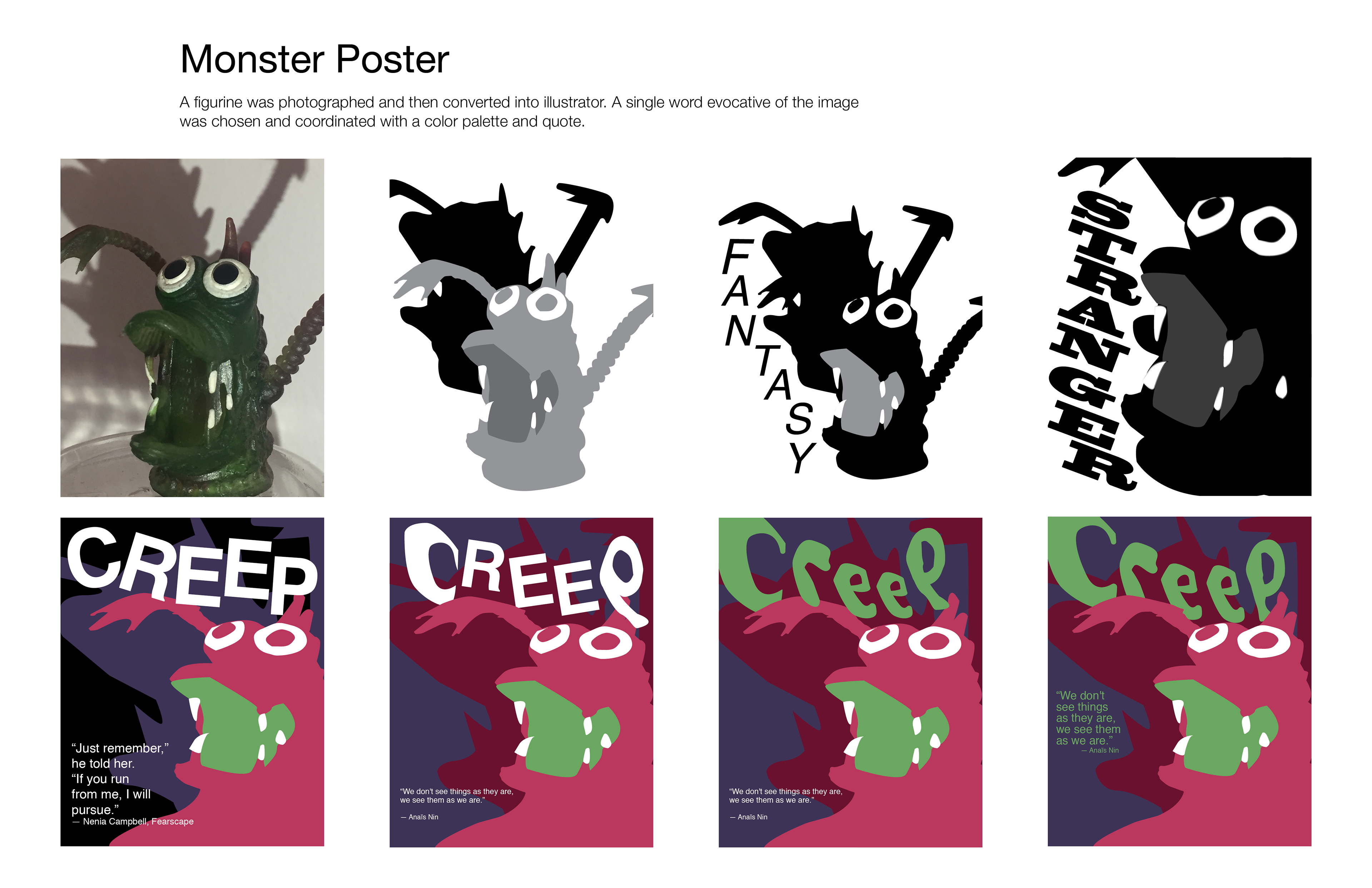 This project was developed as part of a poster design project at San Francisco State University. The object selected was a small finger puppet, it was then photographed and then traced in Illustrator. Final composition was developed in InDesign and a quote was added. The specific word chosen was meant to evoke connotations related to the image.
